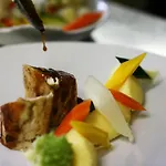 Na terenie posiadłości można zjeść śniadanie w formie bufetu. Do dyspozycji gości jest restauracja La des Melezes, która zachwyca wspaniałą kuchnią.